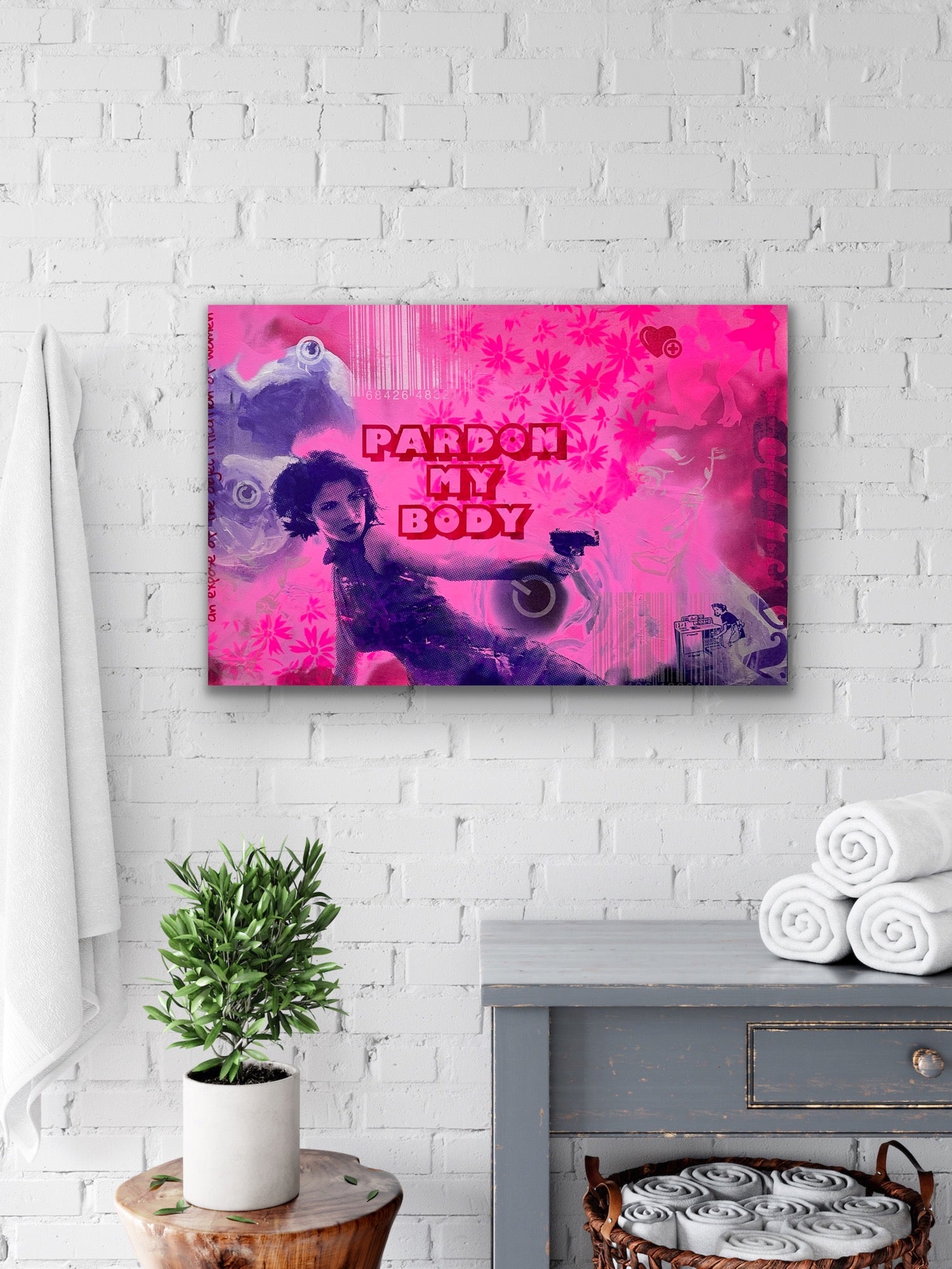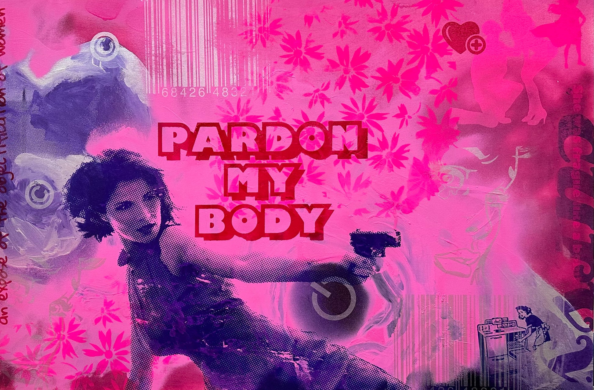 Acrylic, Spraypaint and Original Screenprint on Wood. 2023. 36"x24"x1.5". Ready to hang!