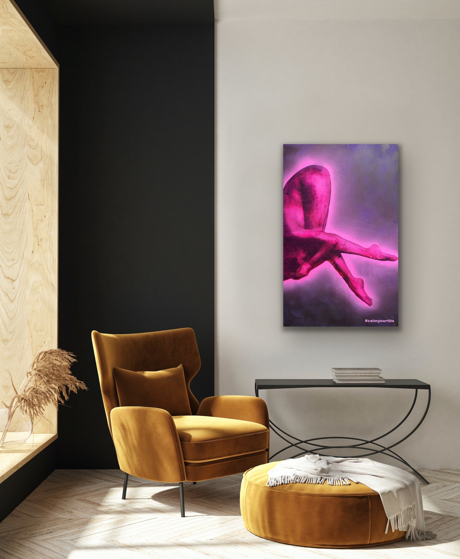 Acrylic, Spraypaint and Original Screenprint on Wood. 2023. 30"x40"x1.5". Ready to hang!
