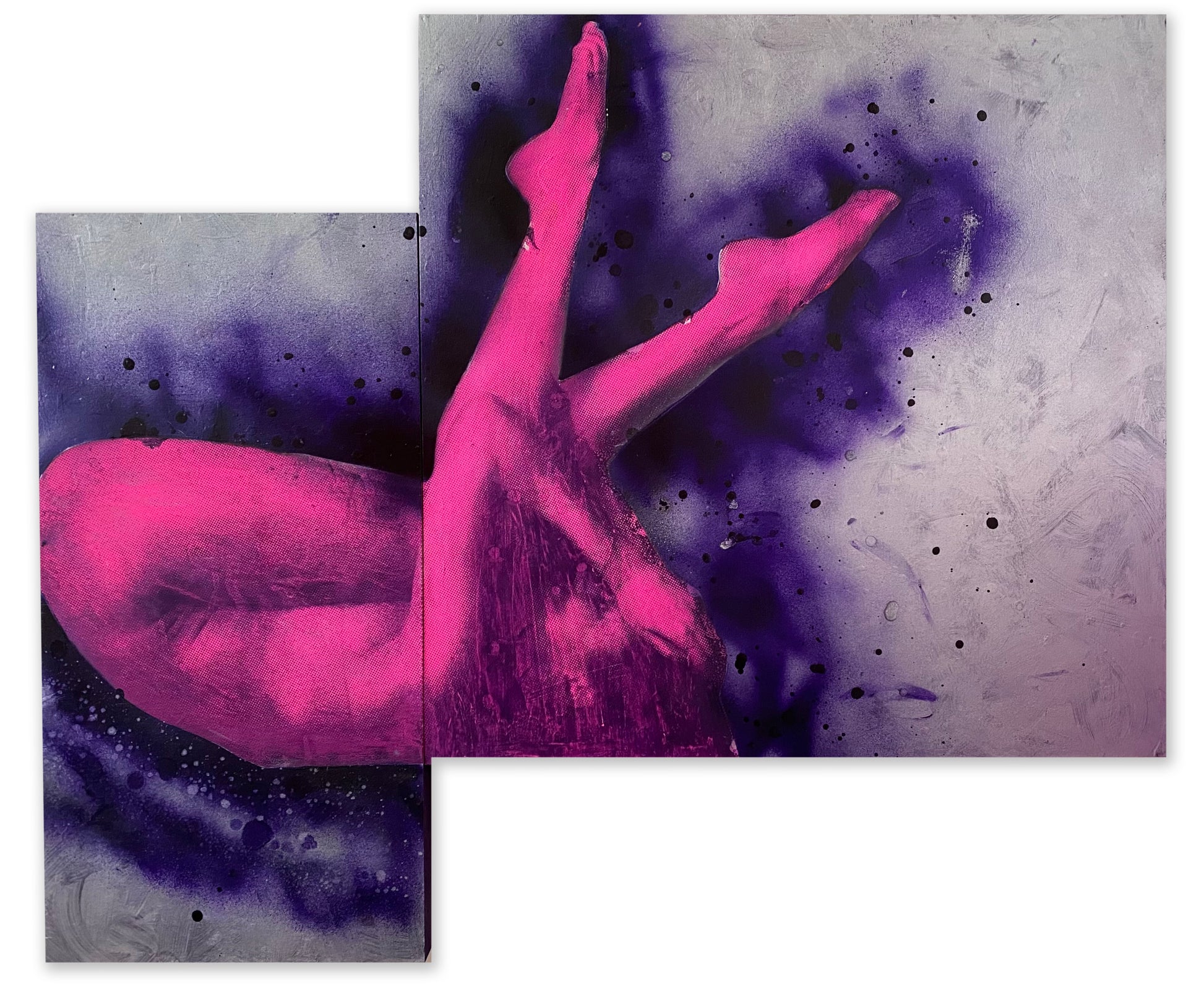 Acrylic, Spraypaint and Original Screenprint on Wood Panels. 2023. 36"x30"x1.5". Ready to hang!