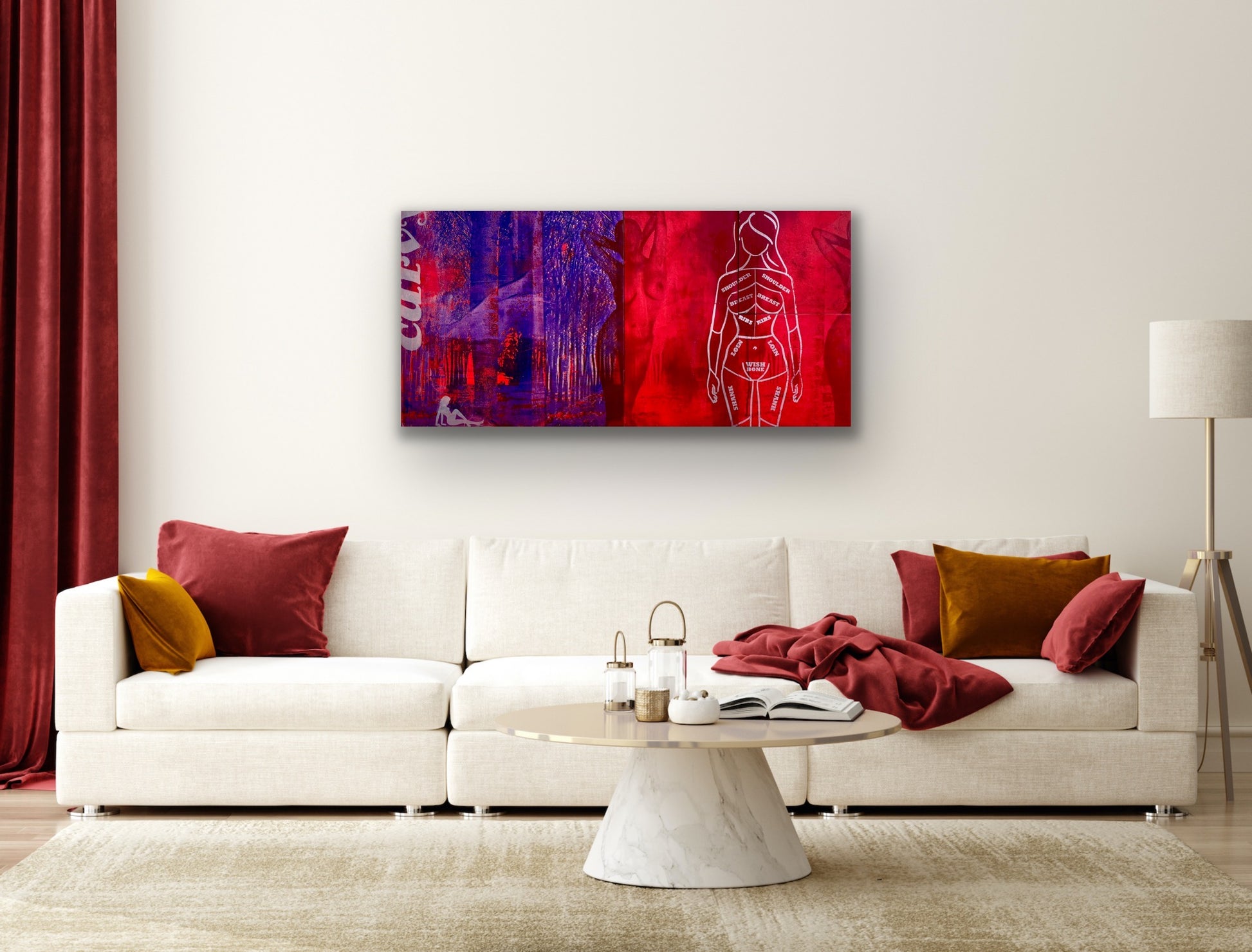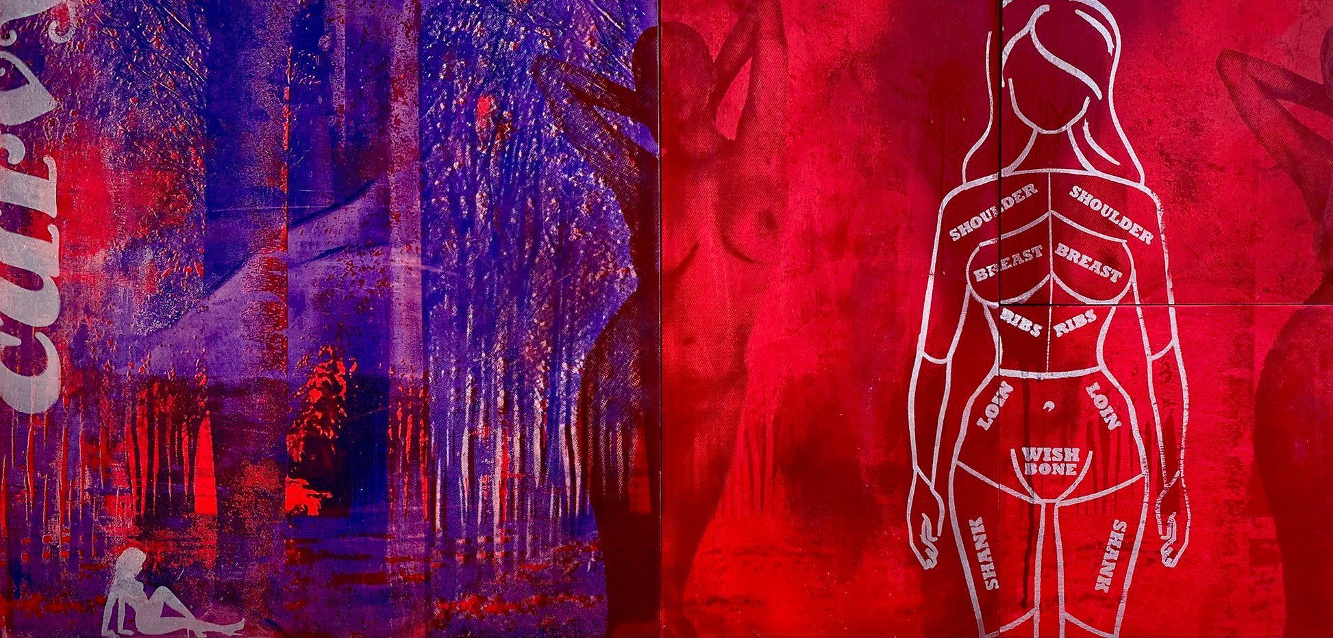 Acrylic, Spraypaint and Original Screenprint on Wood. 2020. 48"x24"x1.5". Ready to hang!
