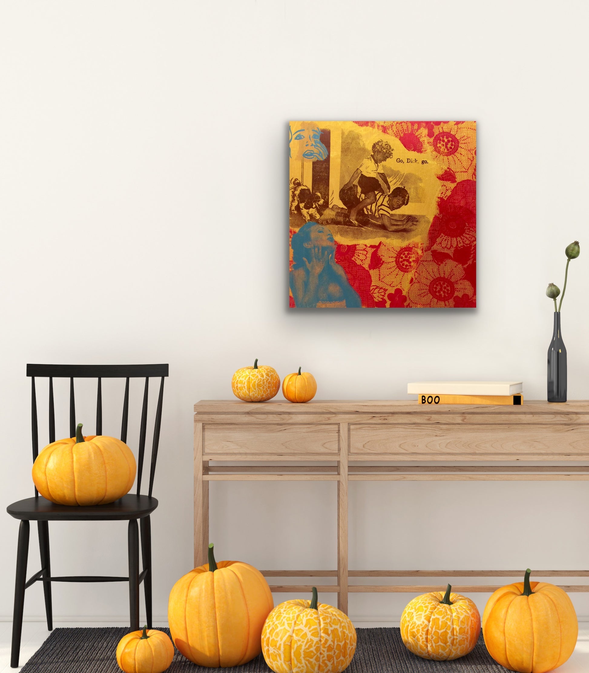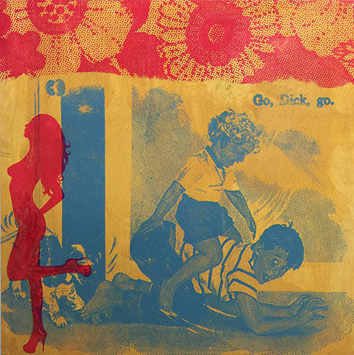 Acrylic, Spraypaint and Original Screenprint on Wood. 2018. 18"x18"x1.5". Ready to hang!