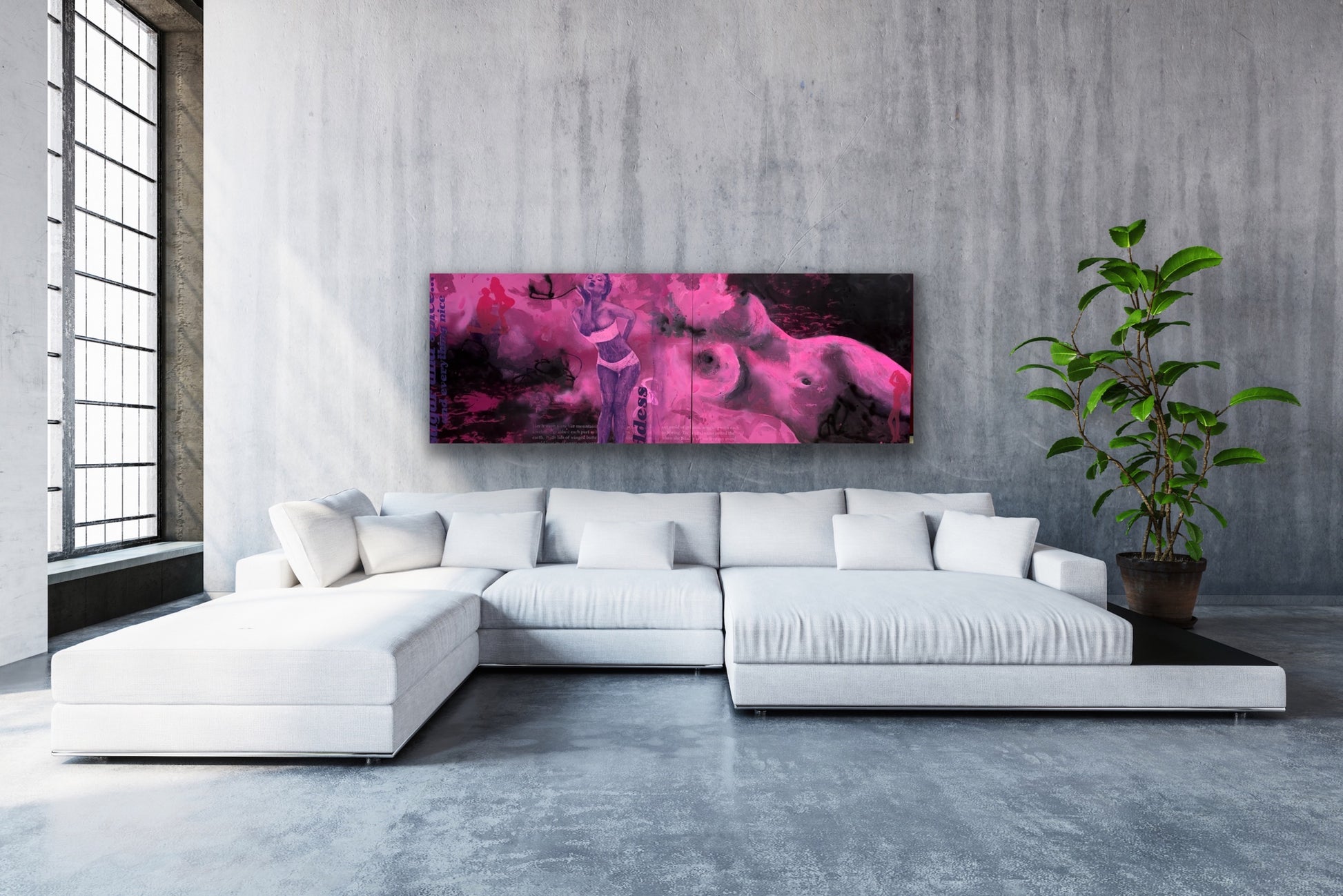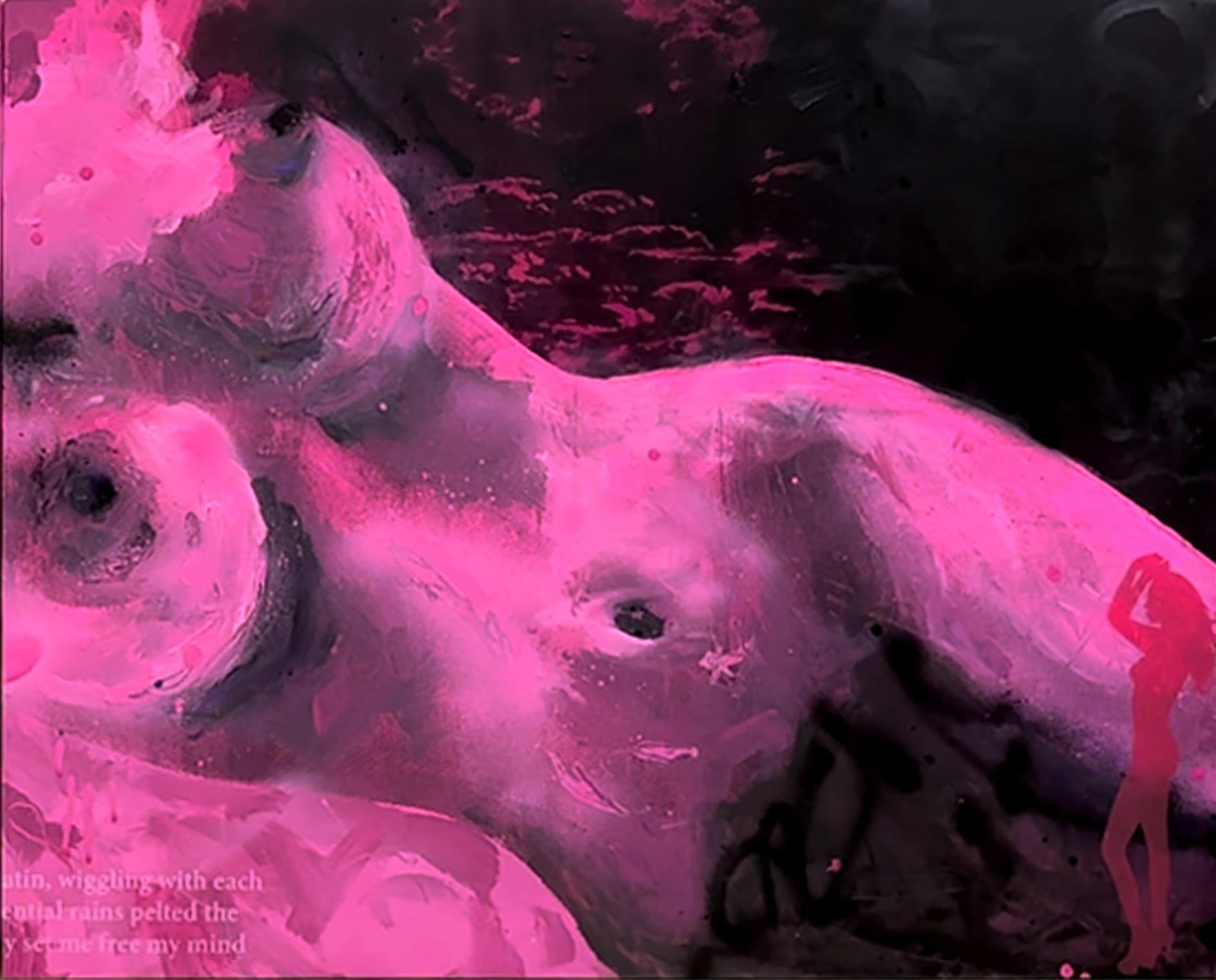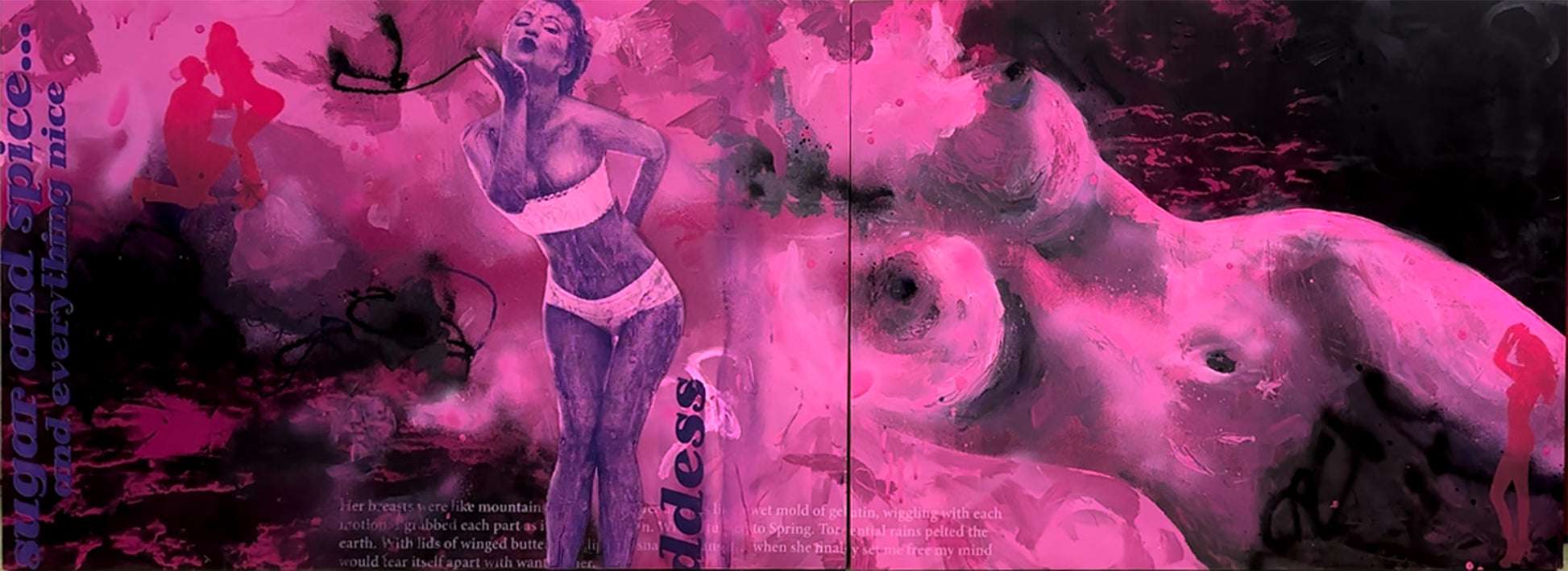 Acrylic, Spraypaint and Original Screenprint on Wood. 2022. 66"x30"x1.5". Ready to hang!