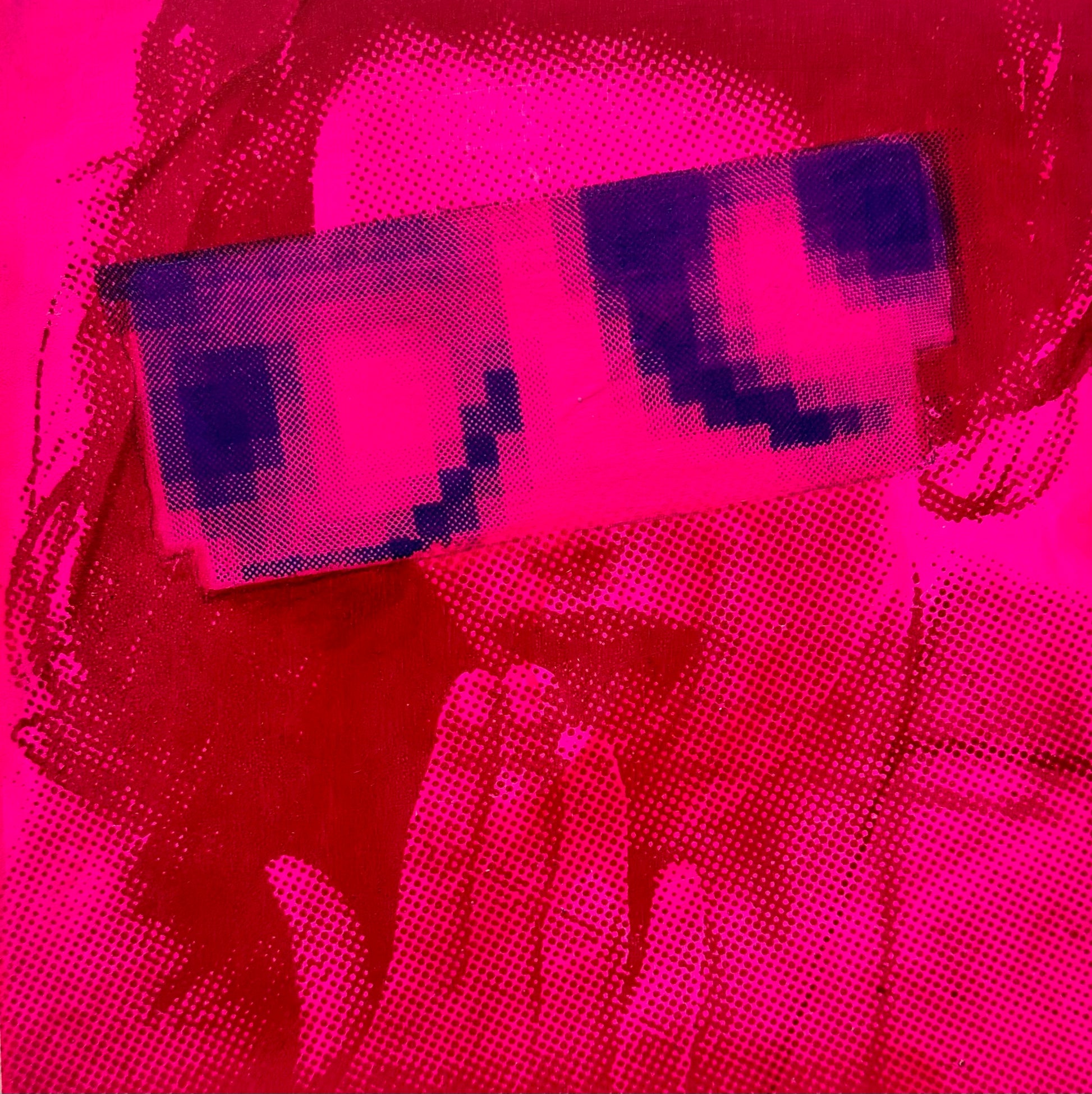 Acrylic, Spraypaint and Original Screenprint on Wood. 2023. 10"x10"x1.5". Ready to hang!