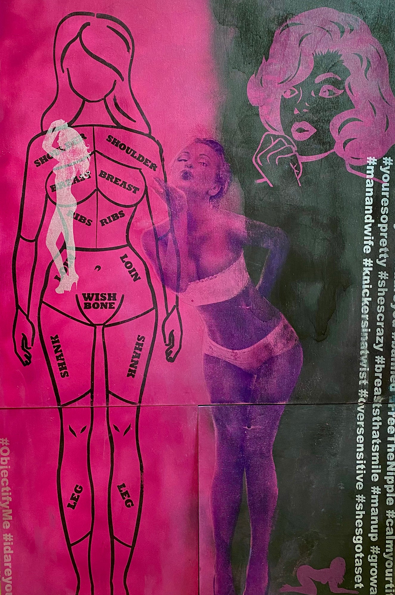 Acrylic, Spraypaint and Original Screenprint on Wood Panels. 2021. 24"x36"x1.5". Ready to hang!