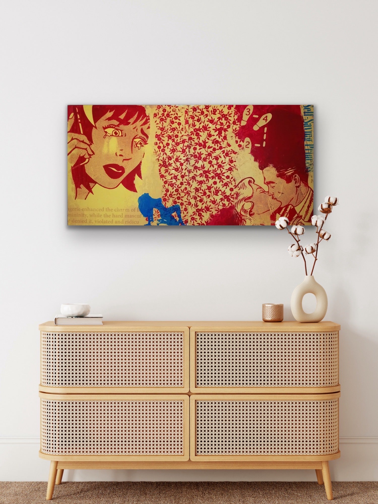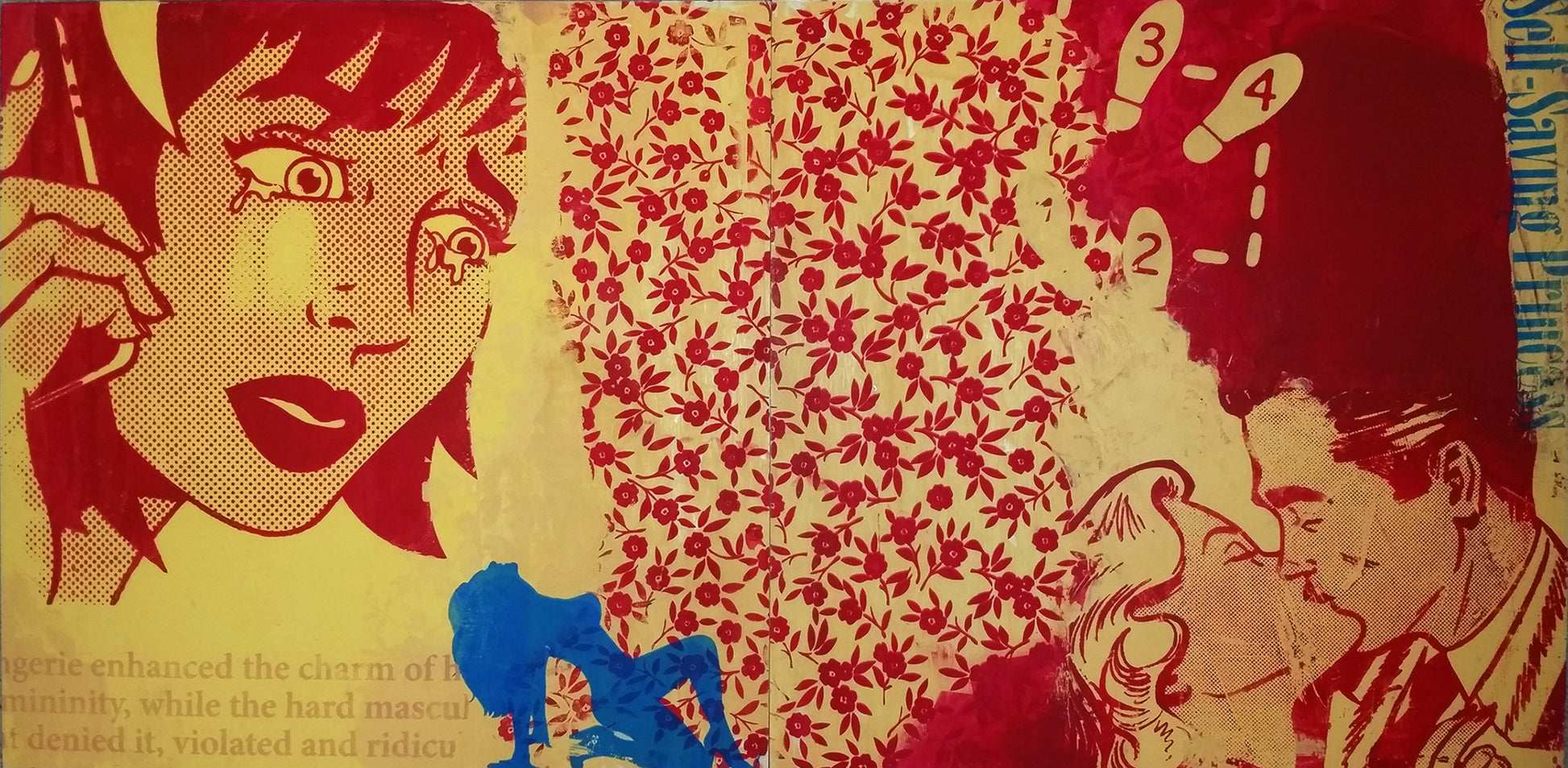 Acrylic, Spraypaint and Original Screenprint on Wood. 2018. 48"x24"x1.5". Ready to hang!