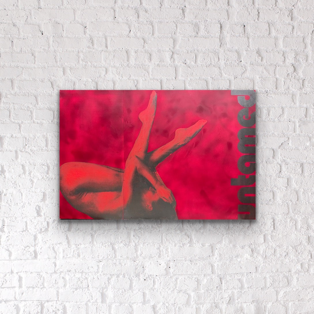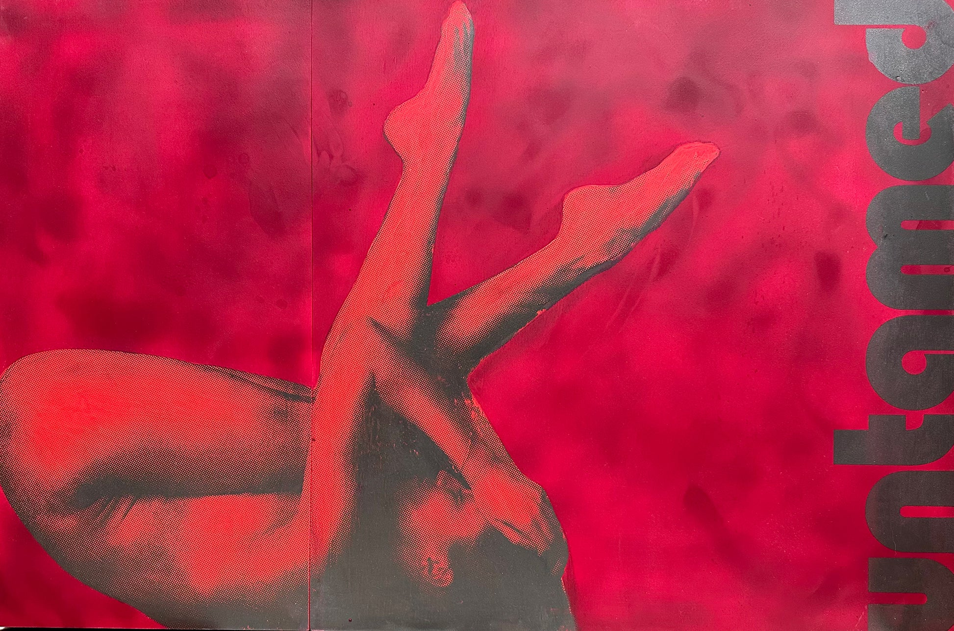 Acrylic, Spraypaint and Original Screenprint on Wood. 2023. 24"x36"x1.5". Ready to hang!