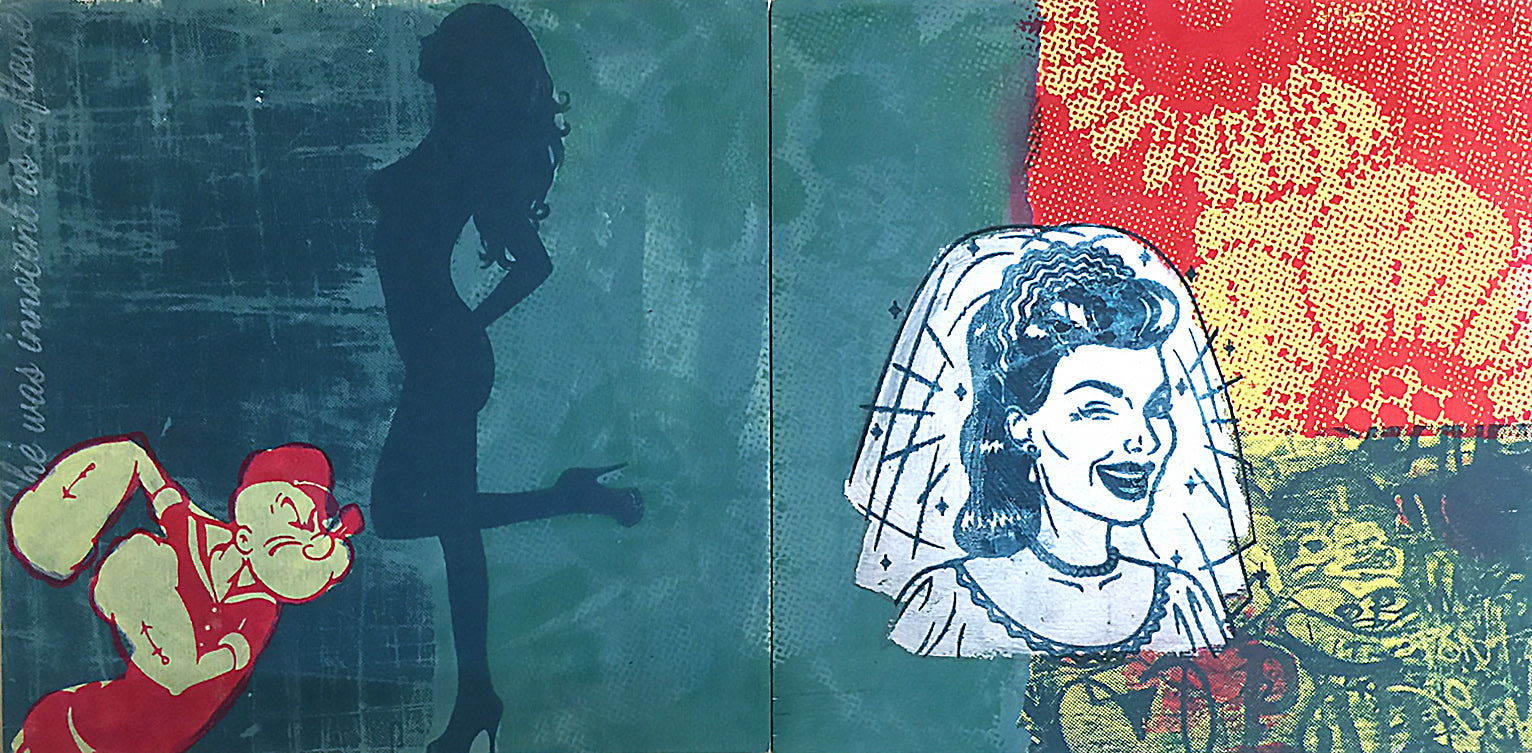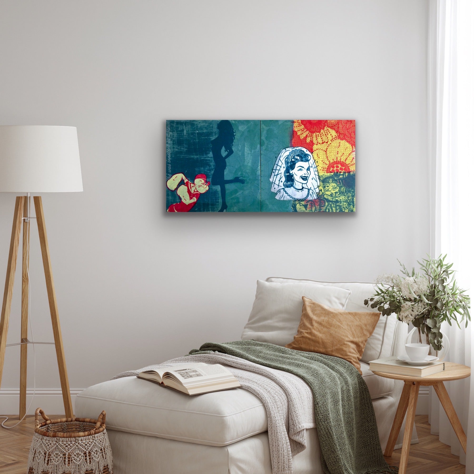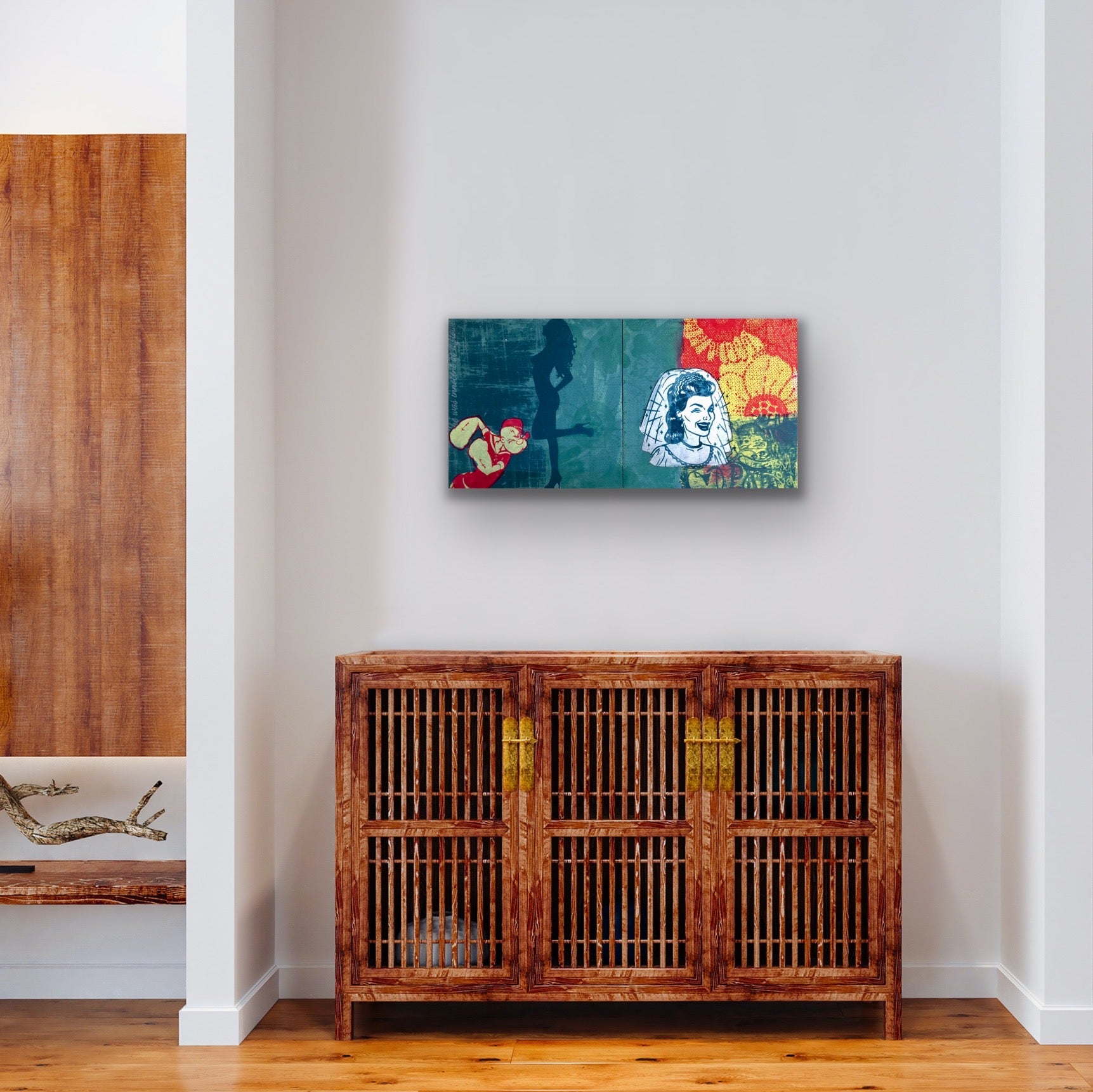 Acrylic, Spraypaint and Original Screenprint on Wood. 2016. 12"x24"x1.5". Ready to hang!