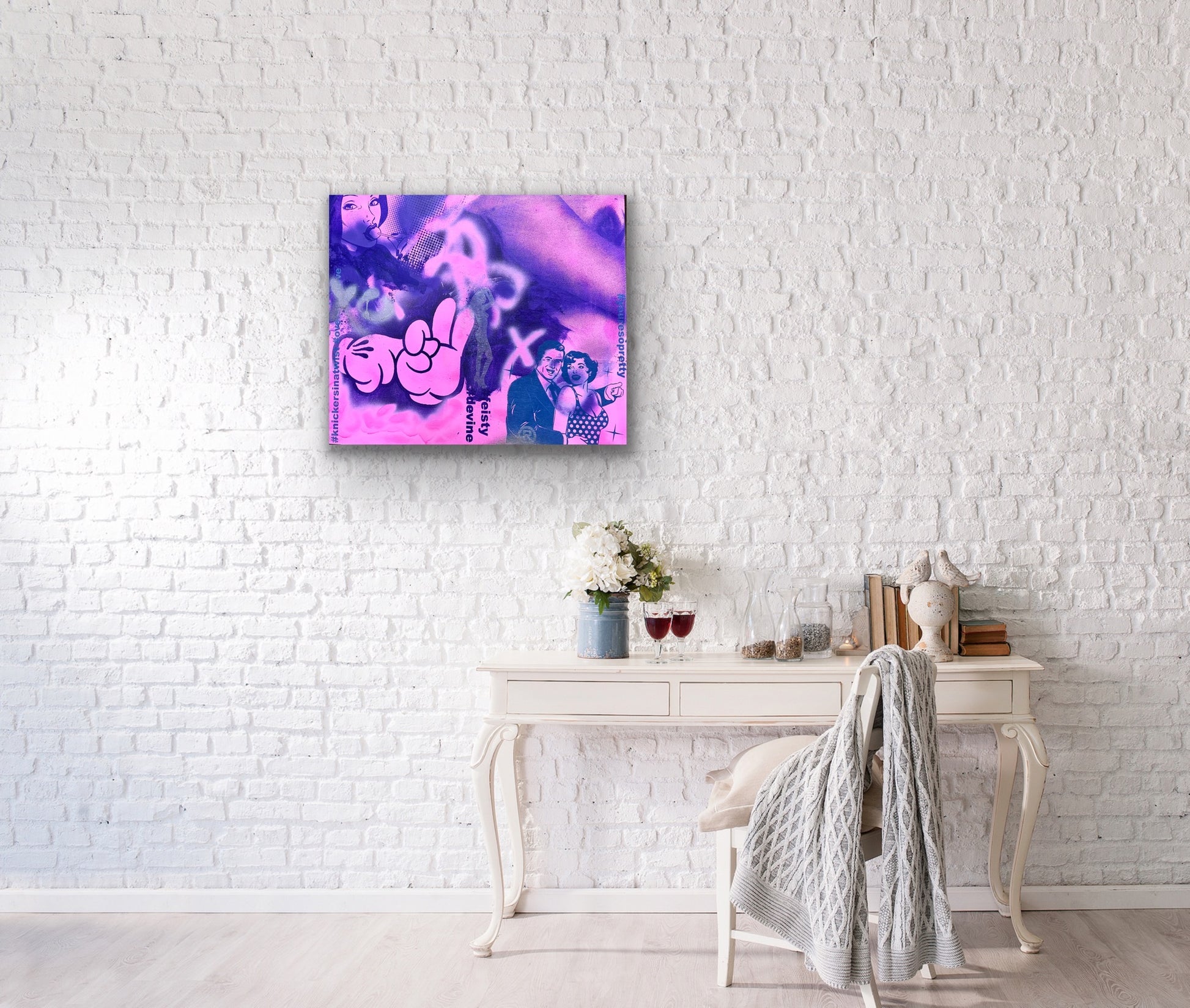 Acrylic, Spraypaint and Original Screenprint on Wood. 2023. 30"x24"x1.5". Ready to hang!