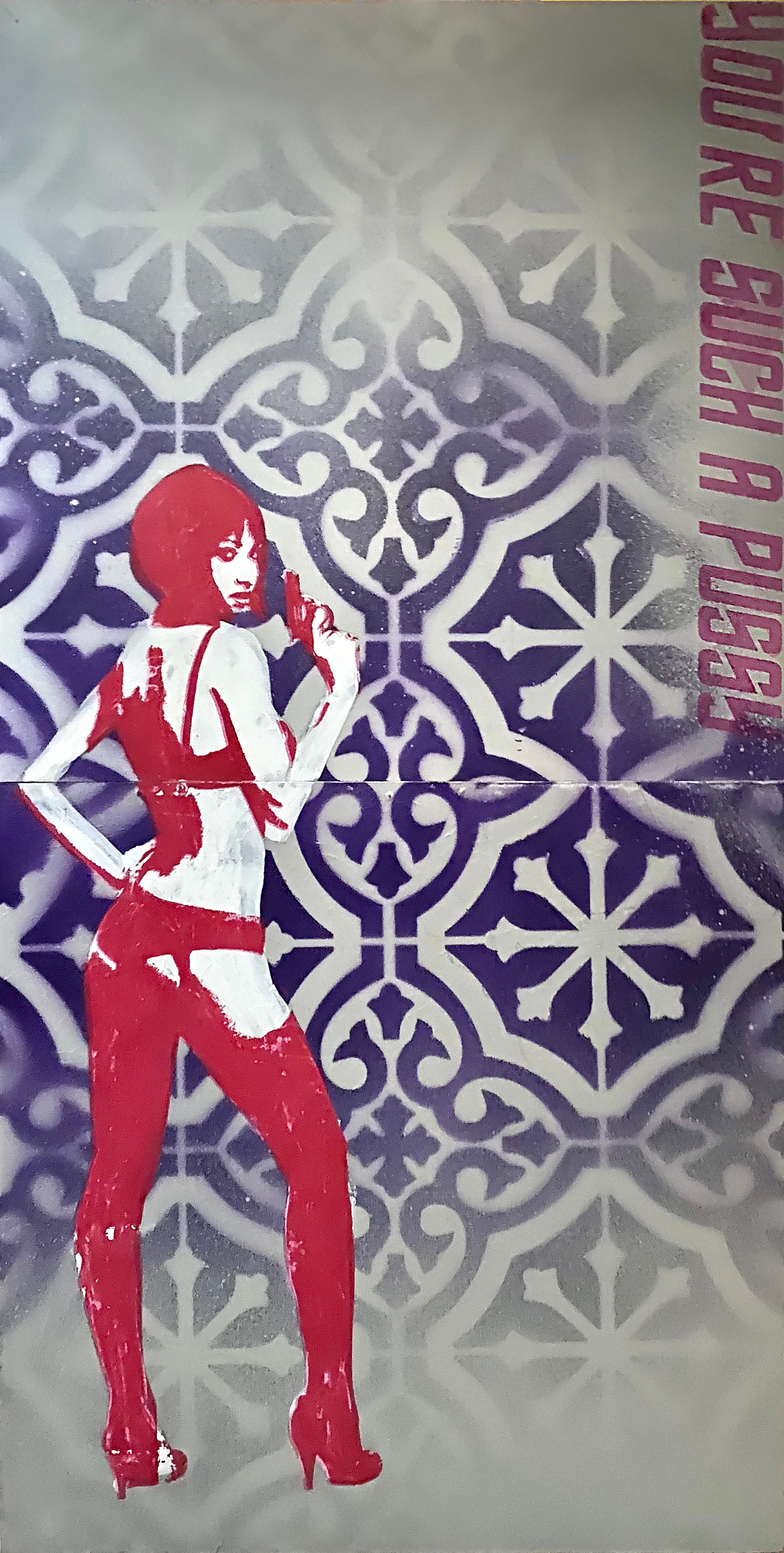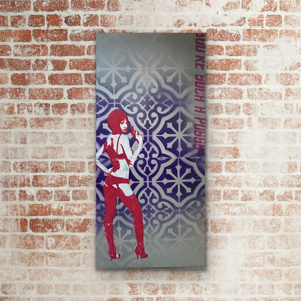 Acrylic, Spraypaint and Original Screenprint on Wood. 2023. 12"x24"x1.5". Ready to hang!